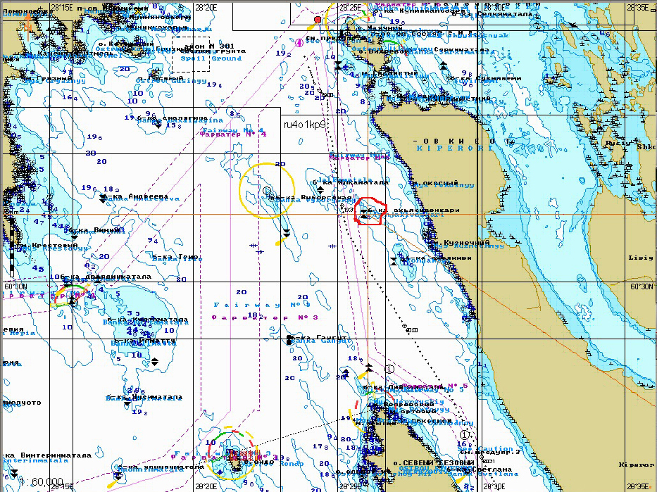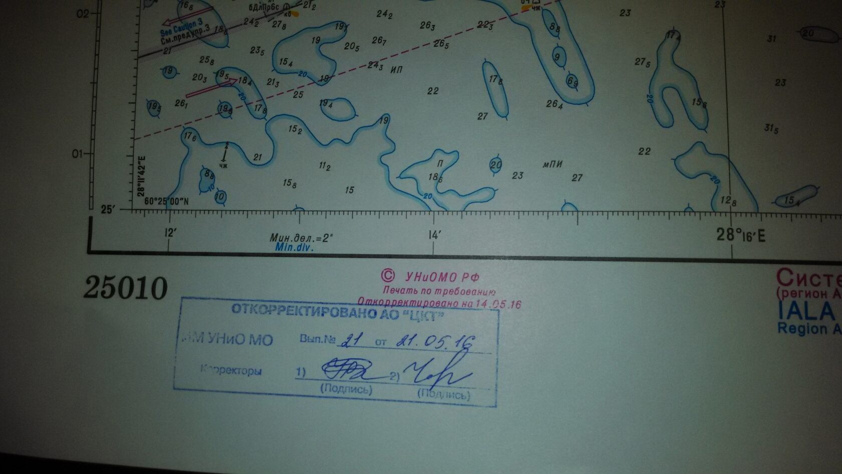 Мы также убедились, что на карте 25010 со свежей корректурой банка Похъякивенкари по- прежнему представлена, как отличительная глубина 3,2 м.